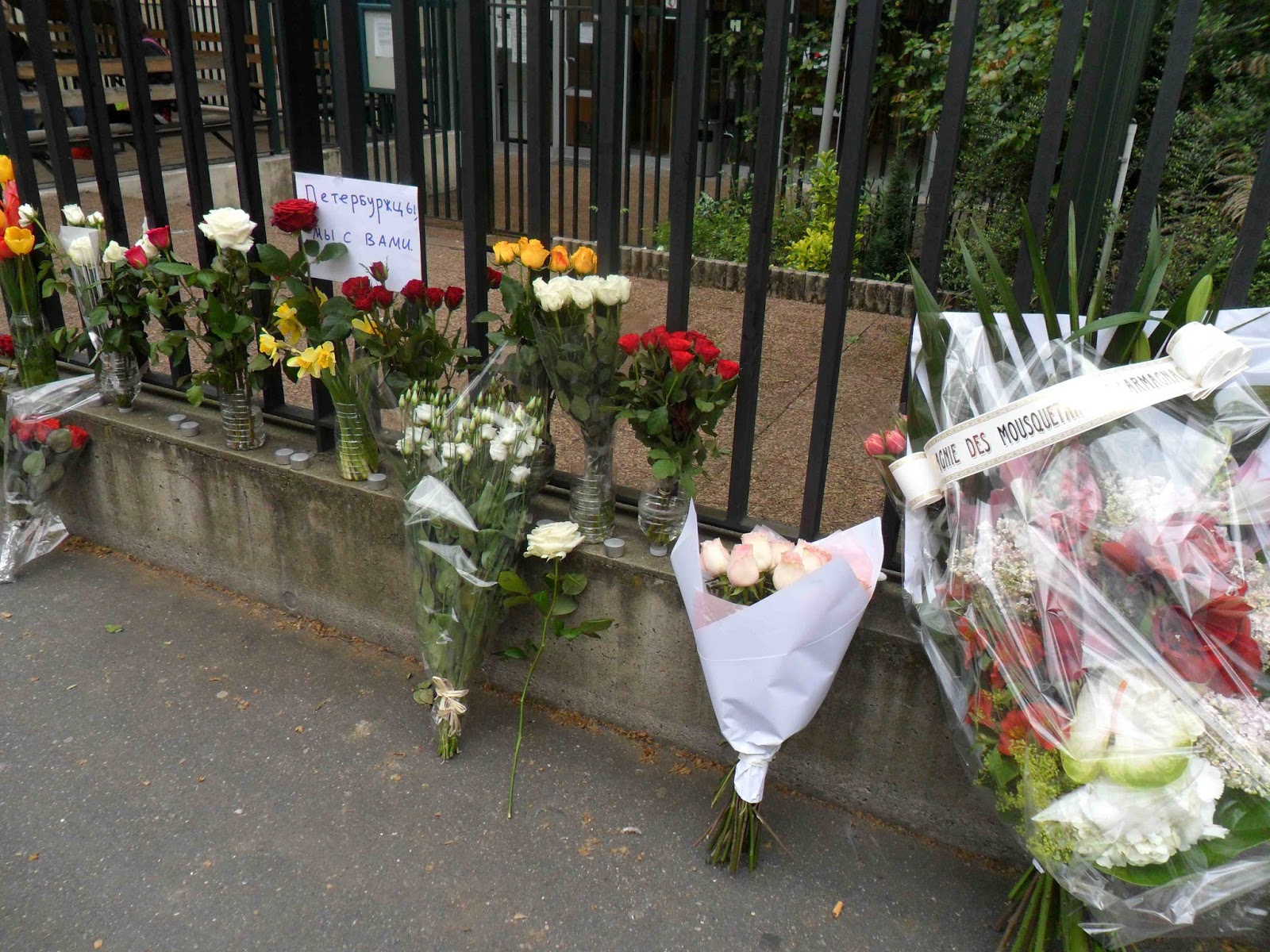 Au nom du Collectif France Russie, nous appelons nos amis à se rejoindre devant l'Ambassade de RUSSIE (40-50 bd Lannes - Paris 16) avec fleurs et drapeaux russes et français dès demain mardi (4 avril 2017) à partir de 11h.00 pour adresser nos condoléances et témoigner notre solidarité avec le peuple russe dans ces moments difficiles. (RER Henri-Martin).